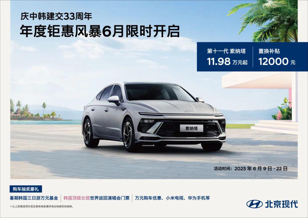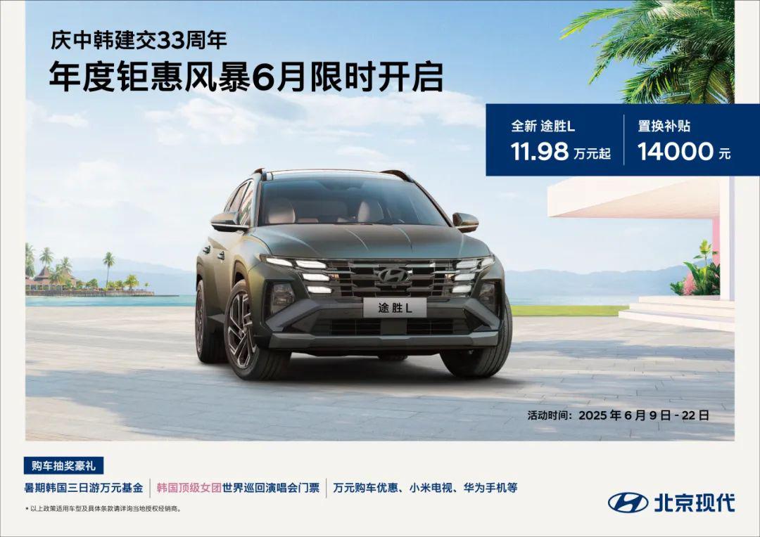 即日起至2025年6月30日,第十一代索纳塔11.98万元起,相比原指导价13.98万-18.68万元,入门版直接优惠2万元;2025款途胜L11.98万元起,原指导价15.98万-21.78万元,入门版优惠高达4万元;库斯途13.98万元起,原指导价17.18万-22.08万元,优惠3.2万元,全新伊兰特6.98万元起,原指导价9.98万-13.38万元,优惠3万元。